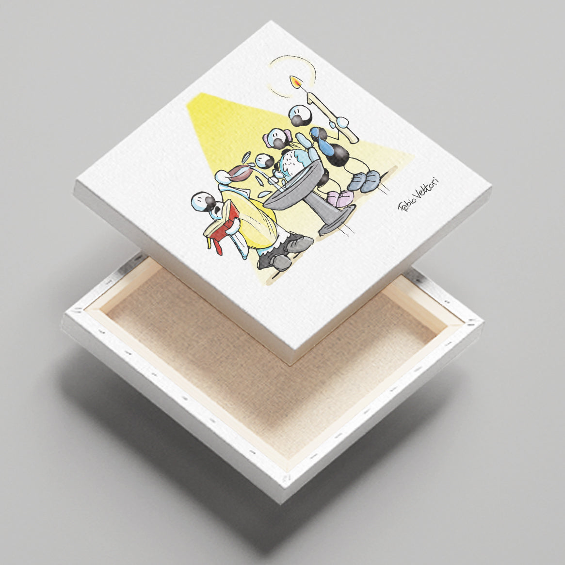 These are screen prints on natural, 100% biodegradable canvas, which is then manually stretched on a 5 cm thick wooden frame. They are produced and packaged in Italy and are available in two different formats: 20x20cm or 40x40cm. But on request they can also be made in large and personalized formats! It is very light and easy to hang thanks to the gold-coloured hook.