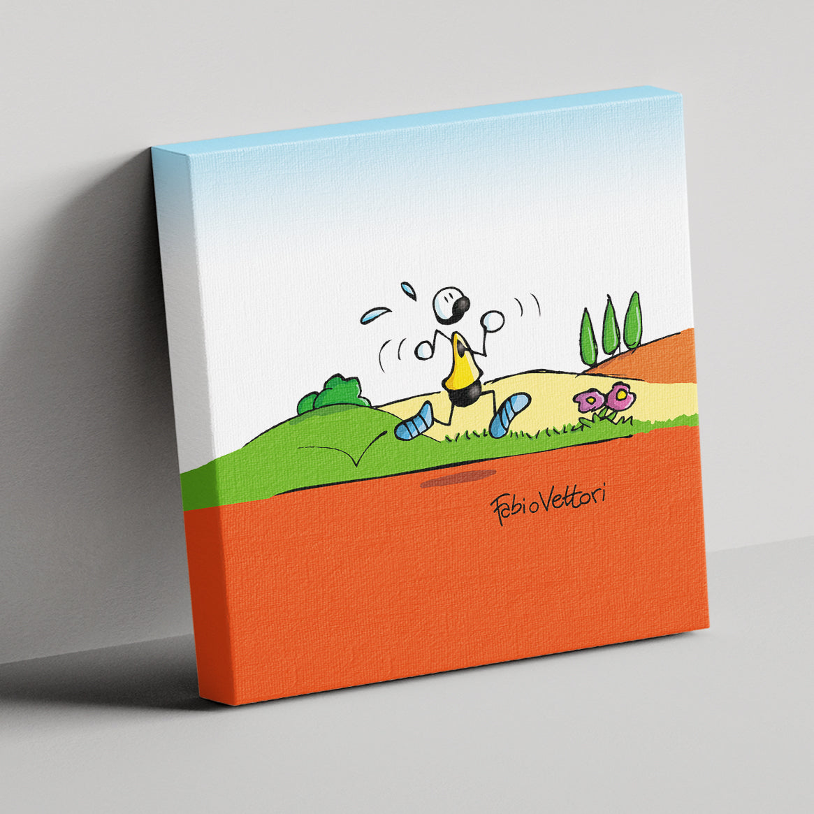These are screen prints on natural, 100% biodegradable canvas, which is then manually stretched on a 5 cm thick wooden frame. They are produced and packaged in Italy and are available in two different formats: 20x20cm or 40x40cm. But on request they can also be made in large and personalized formats! It is very light and easy to hang thanks to the gold-coloured hook.