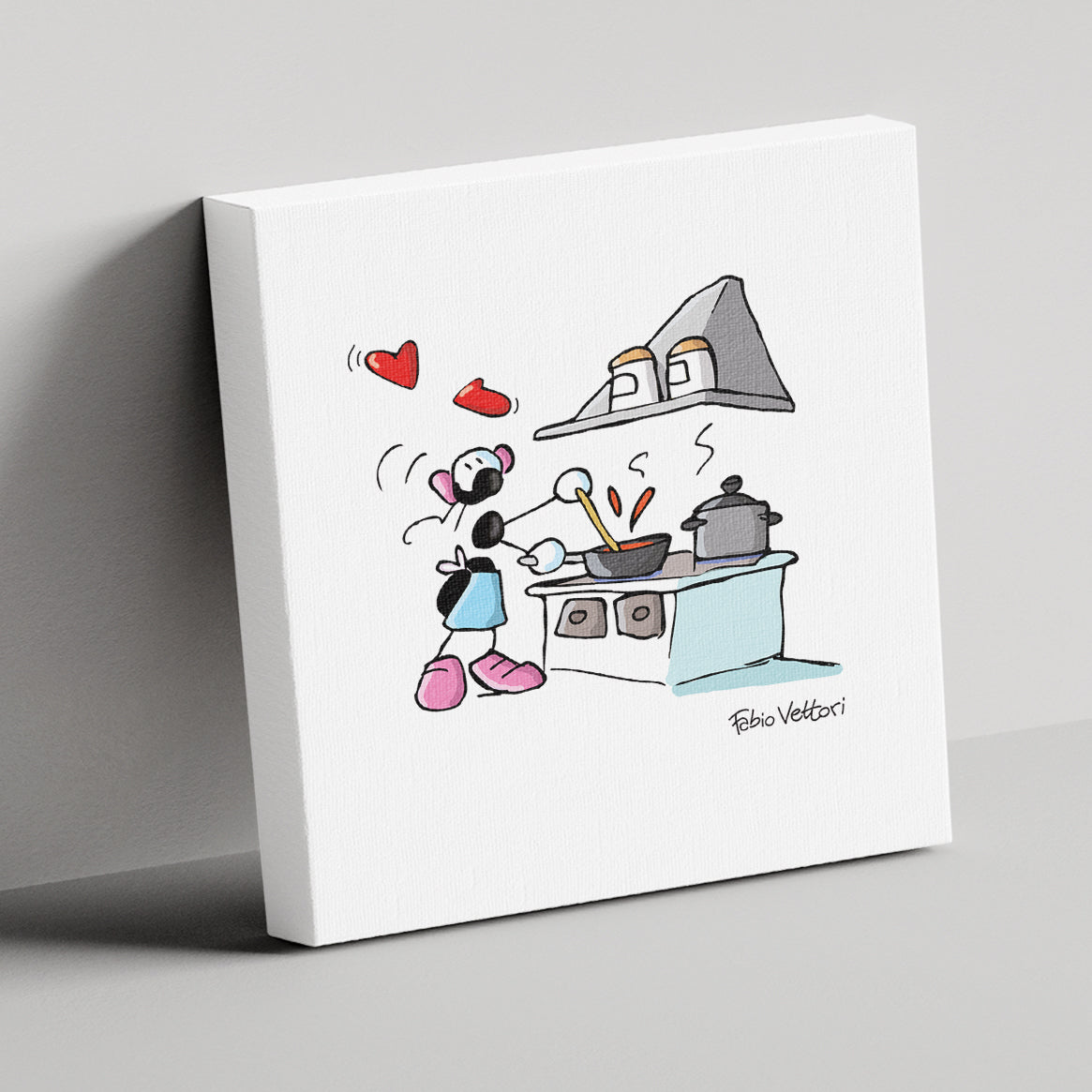 These are screen prints on natural, 100% biodegradable canvas, which is then manually stretched on a 5 cm thick wooden frame. They are produced and packaged in Italy and are available in two different formats: 20x20cm or 40x40cm. But on request they can also be made in large and personalized formats! It is very light and easy to hang thanks to the gold-coloured hook.