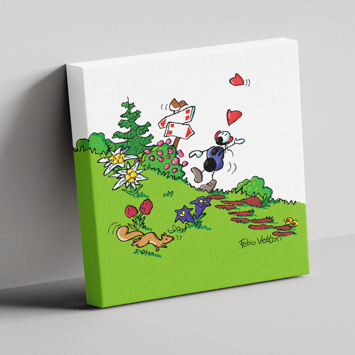 These are screen prints on natural, 100% biodegradable canvas, which is then manually stretched on a 5 cm thick wooden frame. They are produced and packaged in Italy and are available in two different formats: 20x20cm or 40x40cm. But on request they can also be made in large and personalized formats! It is very light and easy to hang thanks to the gold-coloured hook.