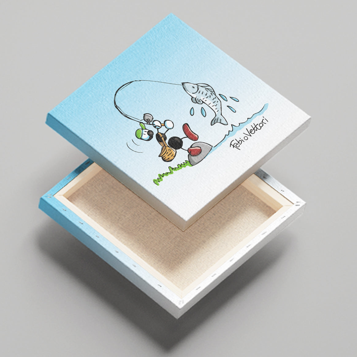 These are screen prints on natural, 100% biodegradable canvas, which is then manually stretched on a 5 cm thick wooden frame. They are produced and packaged in Italy and are available in two different formats: 20x20cm or 40x40cm. But on request they can also be made in large and personalized formats! It is very light and easy to hang thanks to the gold-coloured hook.