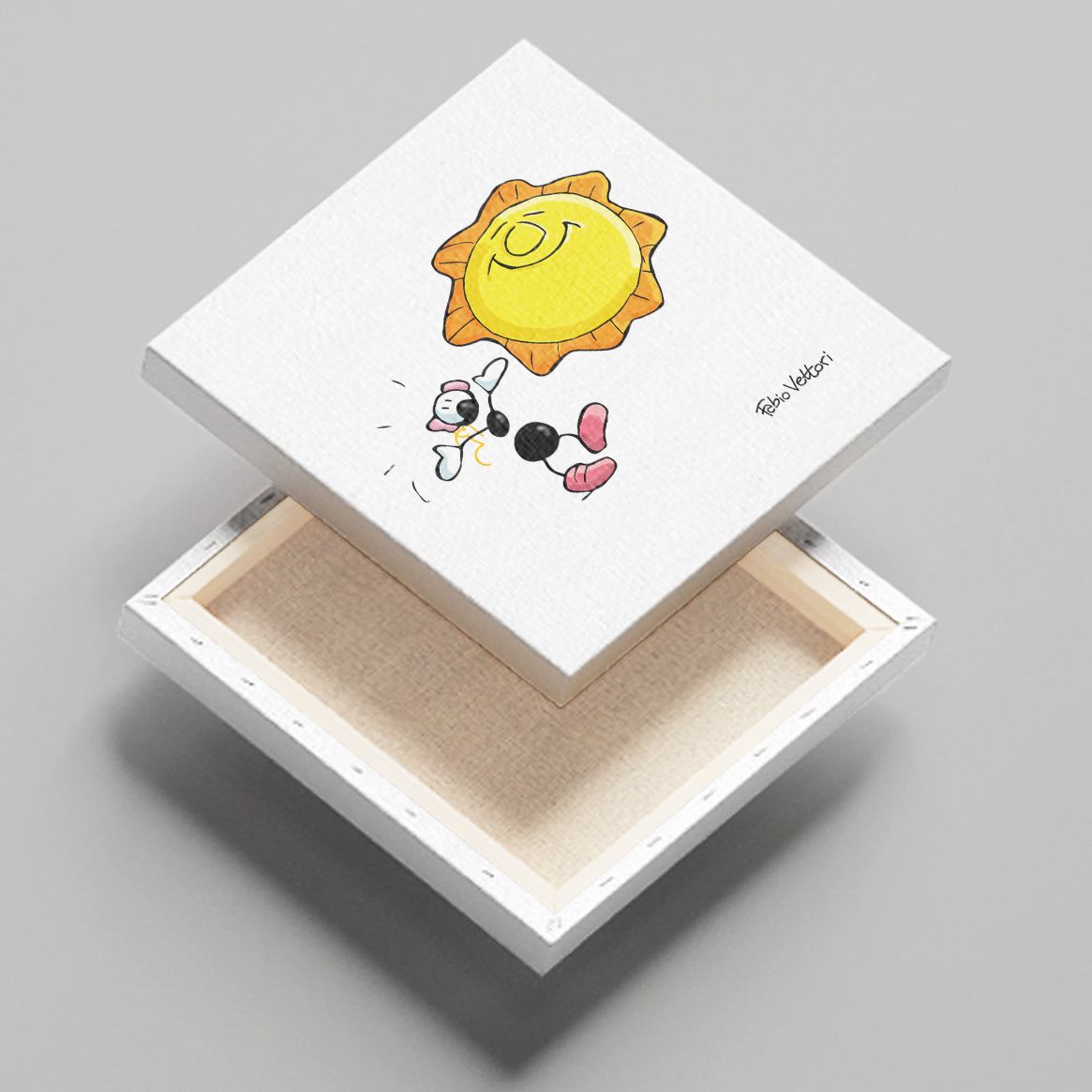 These are screen prints on natural, 100% biodegradable canvas, which is then manually stretched on a 5 cm thick wooden frame. They are produced and packaged in Italy and are available in two different formats: 20x20cm or 40x40cm. But on request they can also be made in large and personalized formats! It is very light and easy to hang thanks to the gold-coloured hook.
