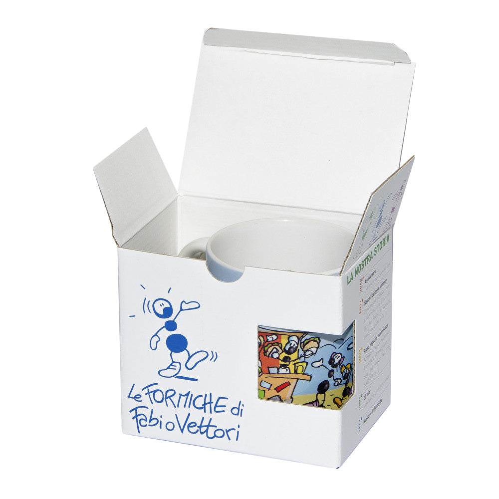 The artistic MUG cups measure 9.5 cm in height and 8 cm in diameter and are made of ceramic with bright colours. They are supplied with the Ants box which can be used as a gift box if necessary.