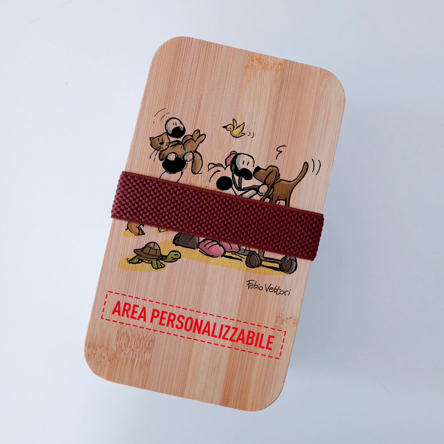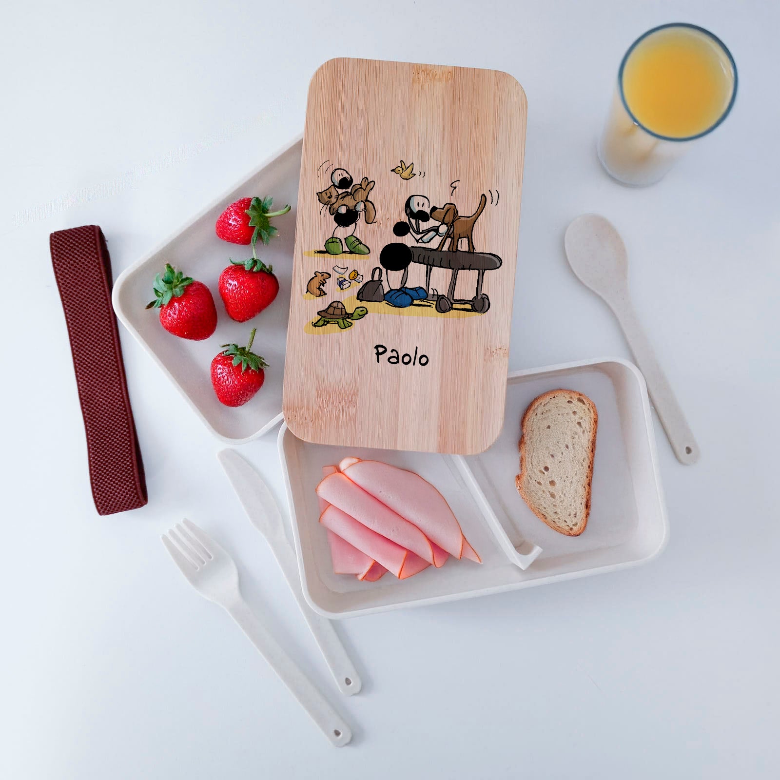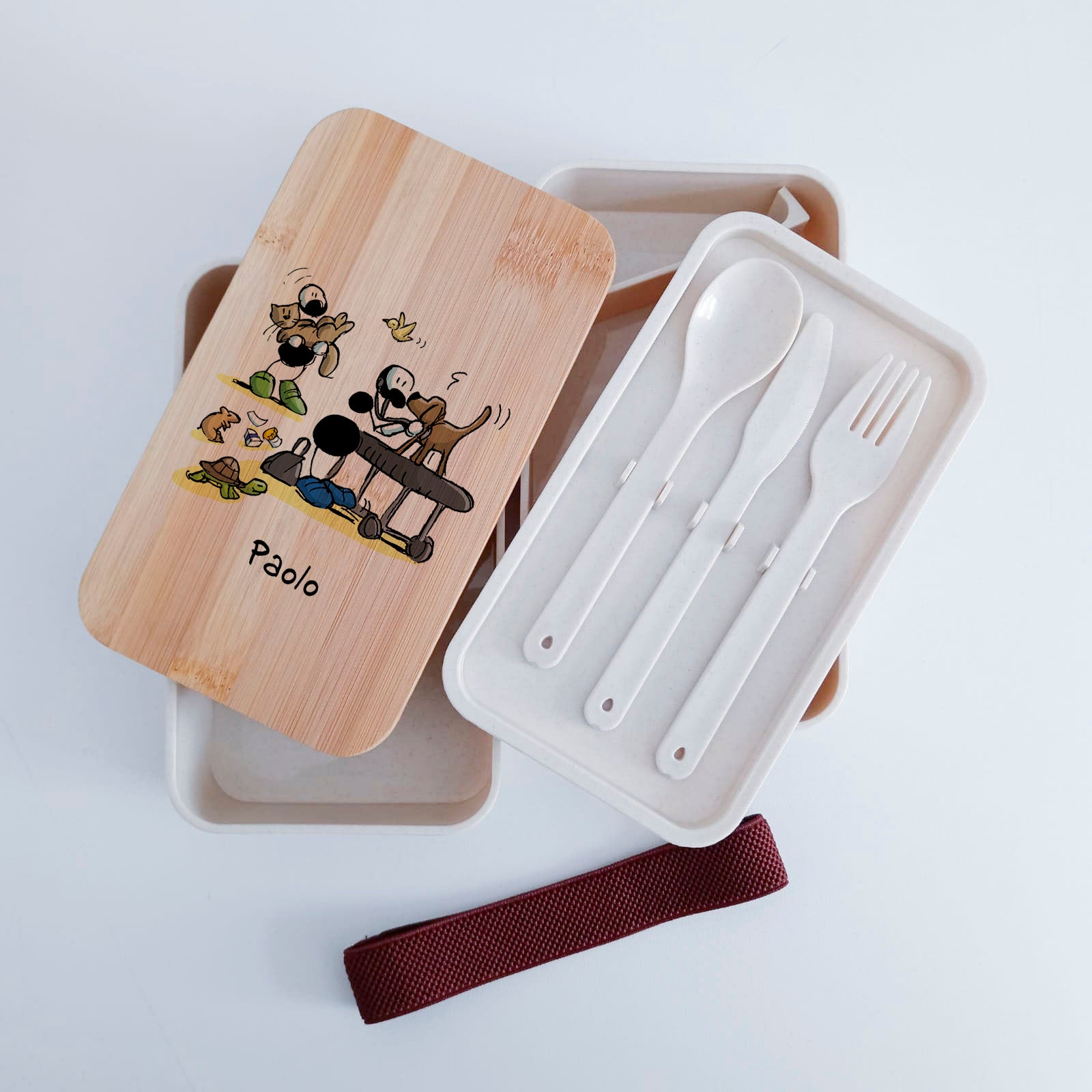 Scatola Porta Pranzo con coperchio in bambù e Posate Personalizzata soggetto "Veterinari"