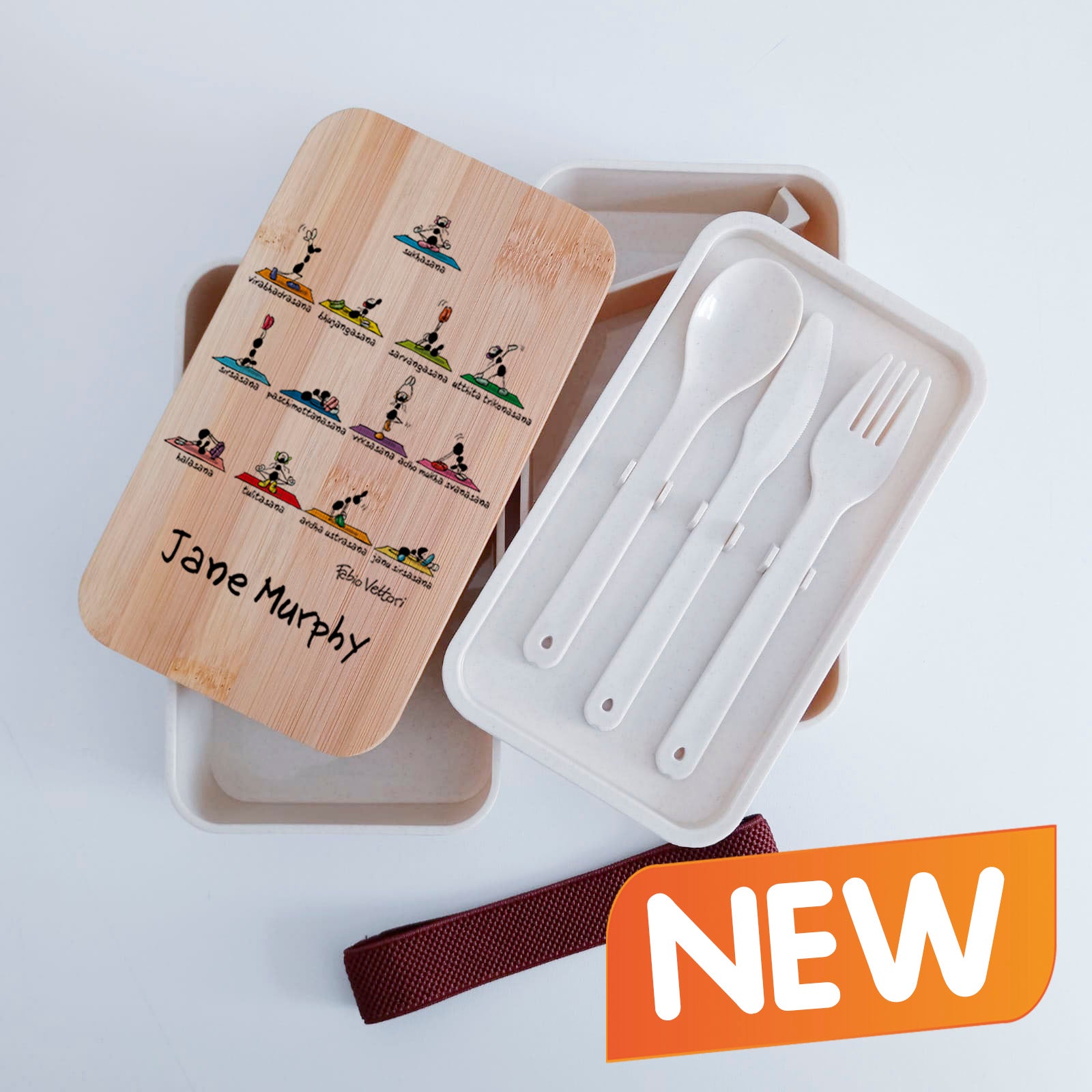 Scatola Porta Pranzo con coperchio in bambù e Posate Personalizzata soggetto "Yoga"