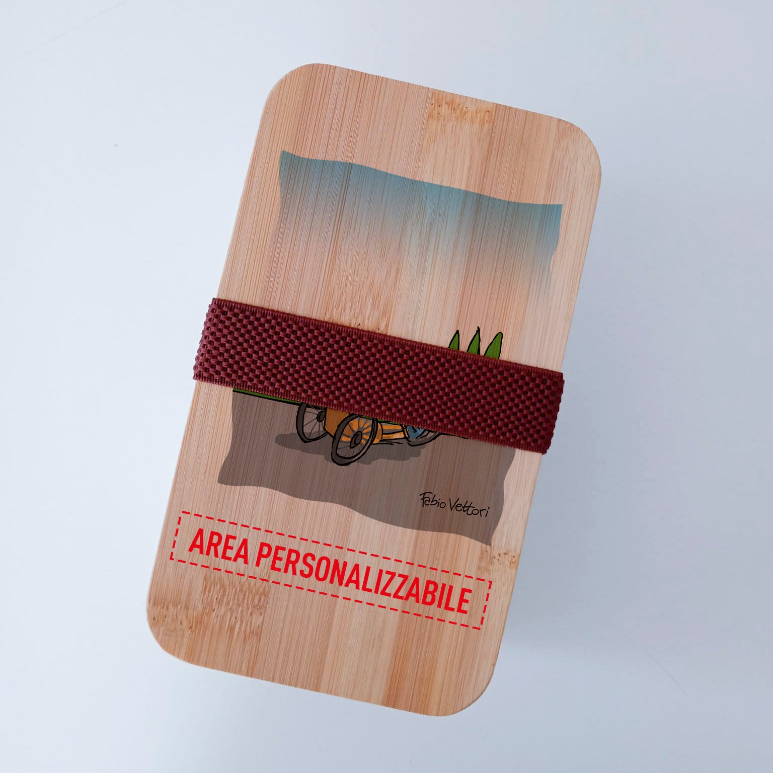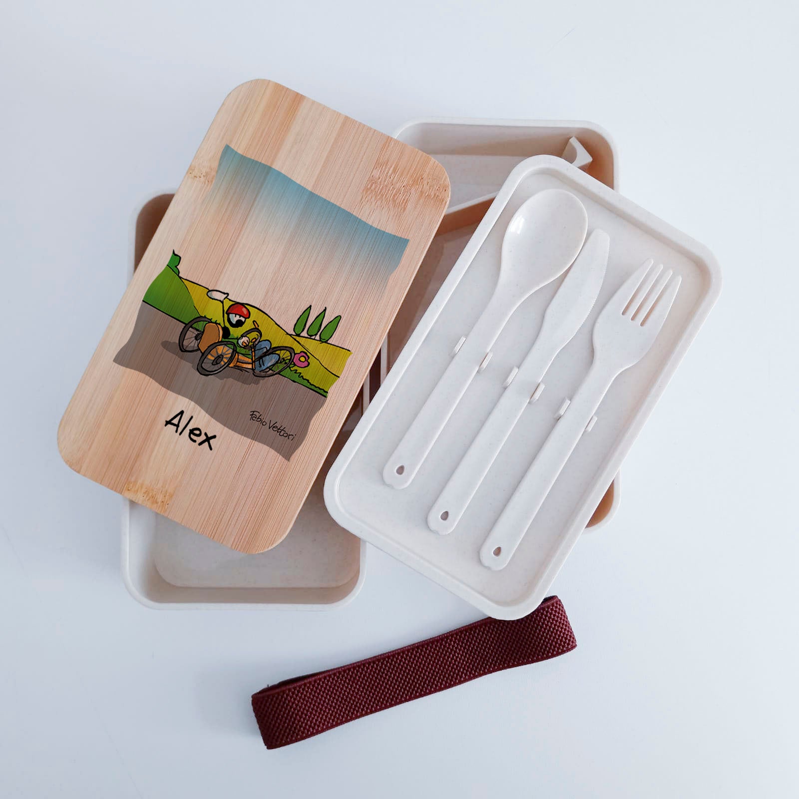 Scatola Porta Pranzo con coperchio in bambù e Posate Personalizzata soggetto "Handbike"