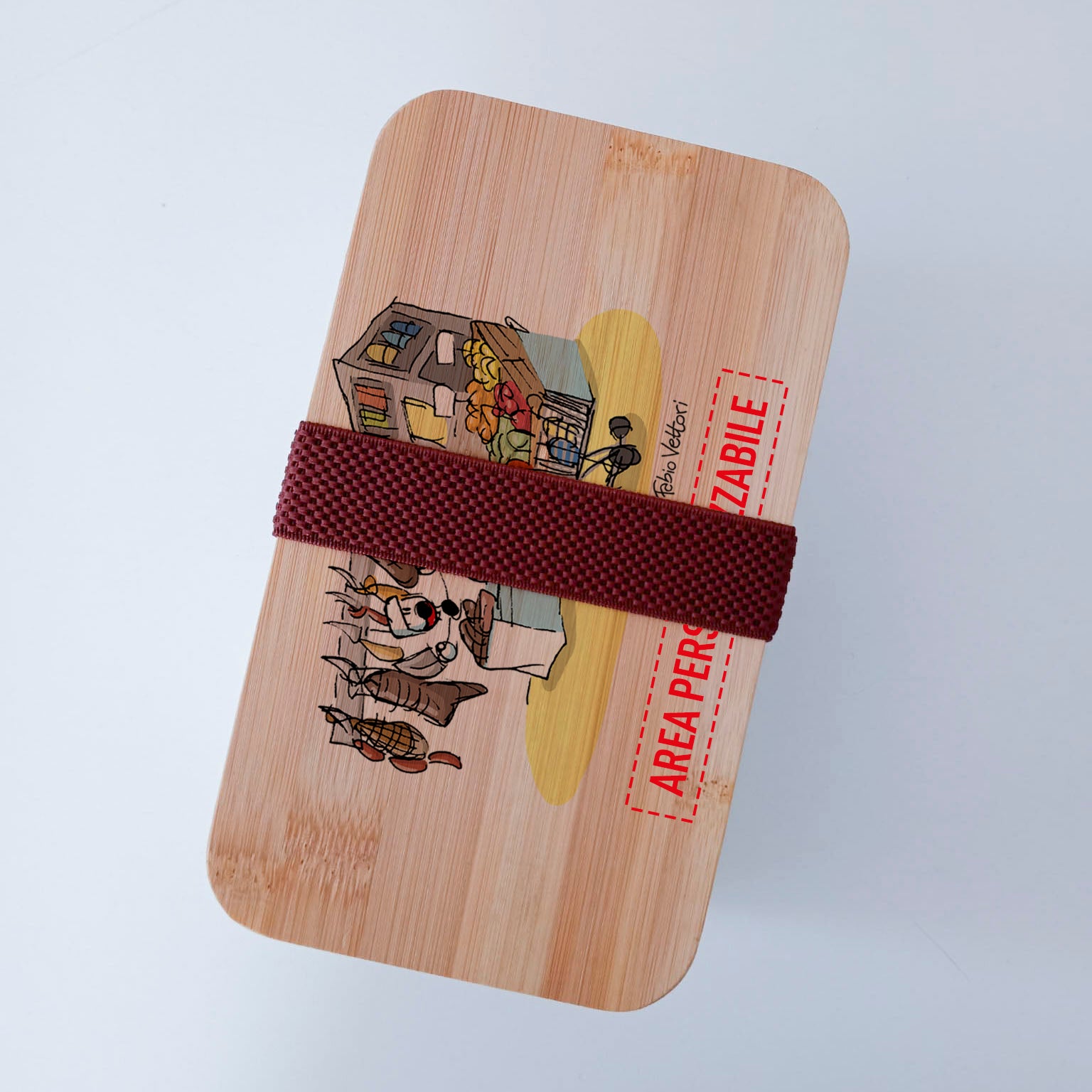 Scatola Porta Pranzo con coperchio in bambù e Posate Personalizzata soggetto "Macellaio"